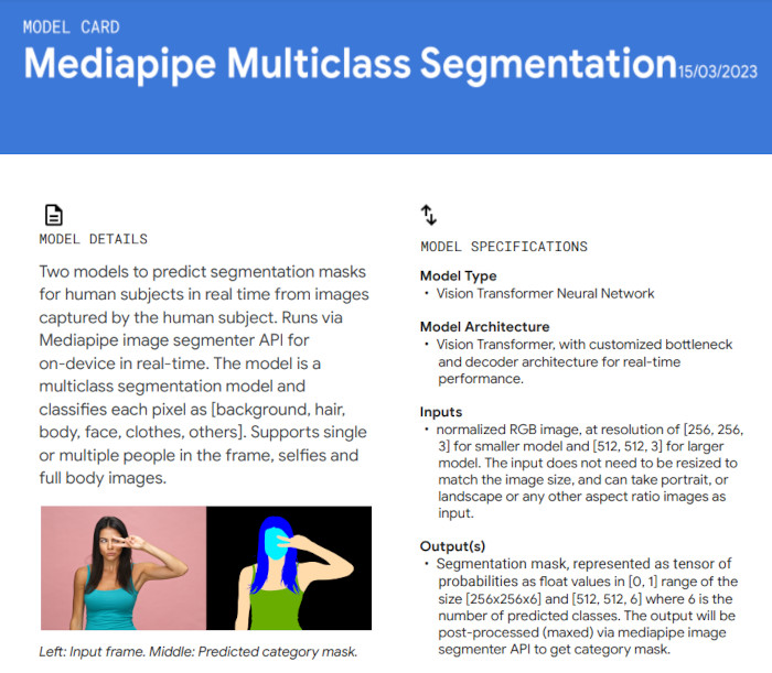 Puedes revisar los modelos disponibles para la segmentación de imagen en la documentación de Mediapipe: